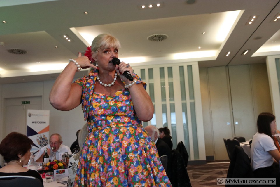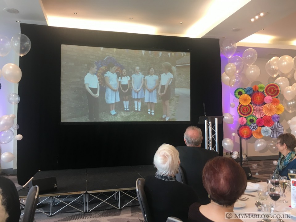 While the guests had lunch, they were entertained by a slideshow of old photos and there was a video montage including footage from the LOVE Marlow festival, and Christmas light light switch-on, plus school children giving reasons why they love Marlow. Marlow FM’s Mike Cannon did a great job as compere for the afternoon , and Anna Nightingale entertained the invited guests with a selection of songs.