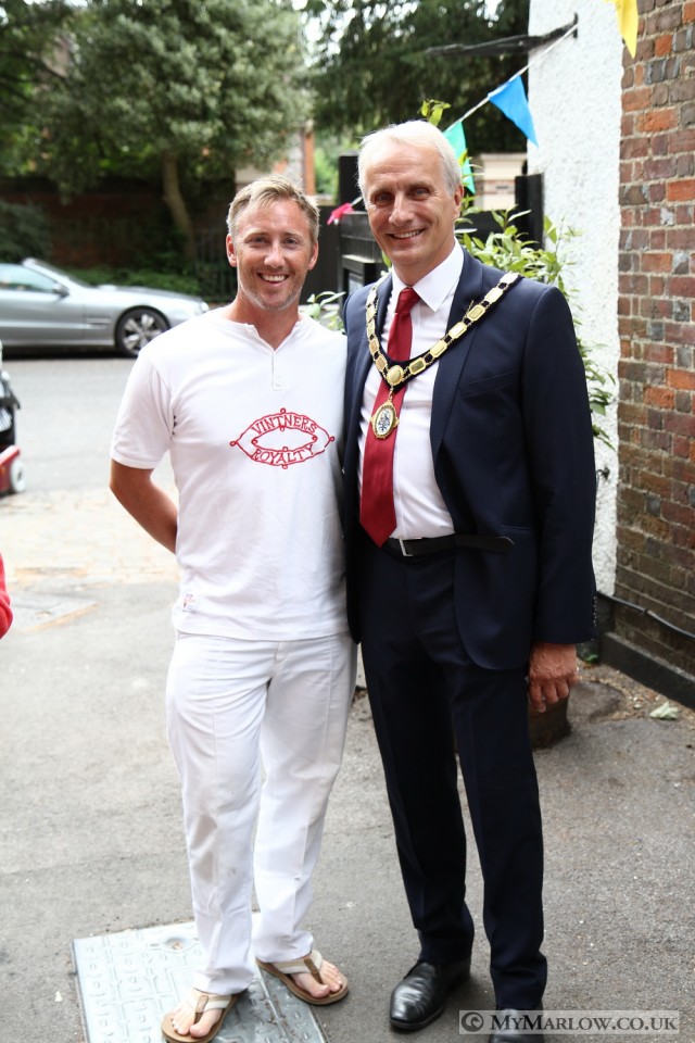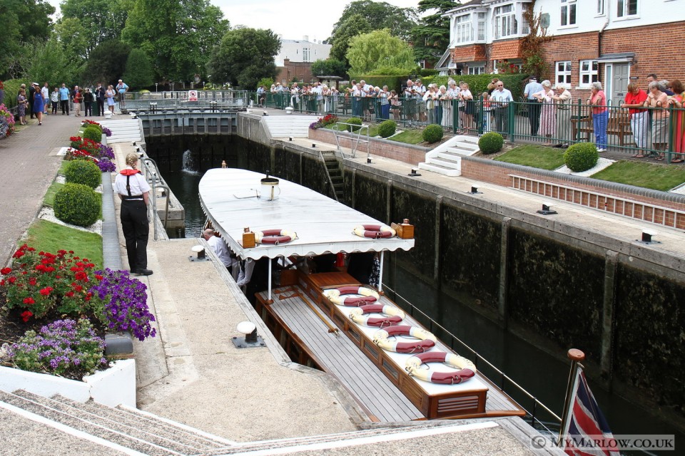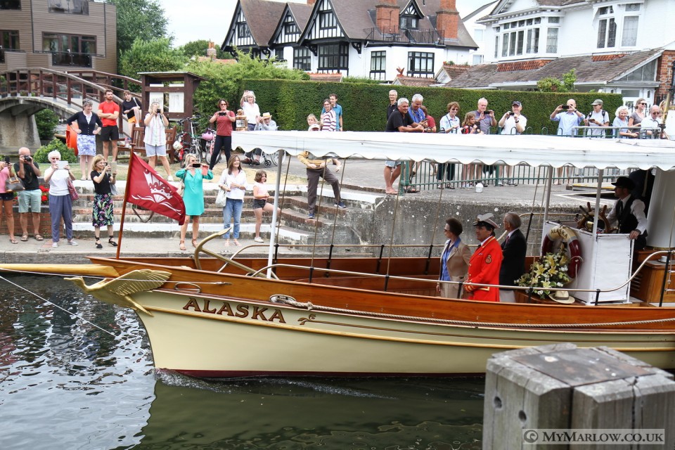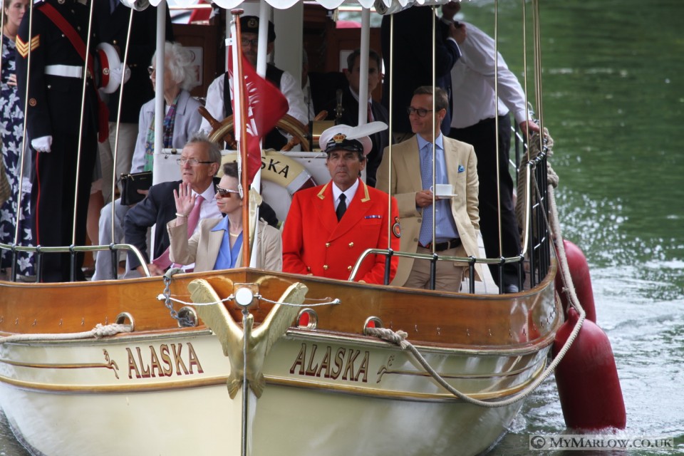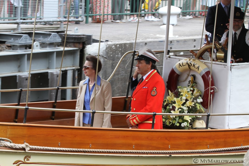 This year we had a special guest- HRH The Princess Royal, Princess Anne was onboard the lead boat from Cookham to Marlow with David Barber, the Queen’s Royal Swan Marker. After talking to the lock-keepers, and town Mayor Chris Funnell, the Princess was dropped off at the Compleat Angler, for a short drive to a waiting helicopter.