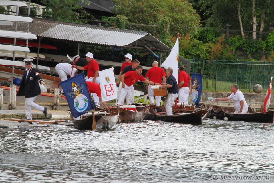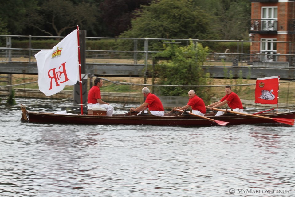 Today saw the arrival in Marlow of the Swan Uppers – the annual ceremonial swan census.